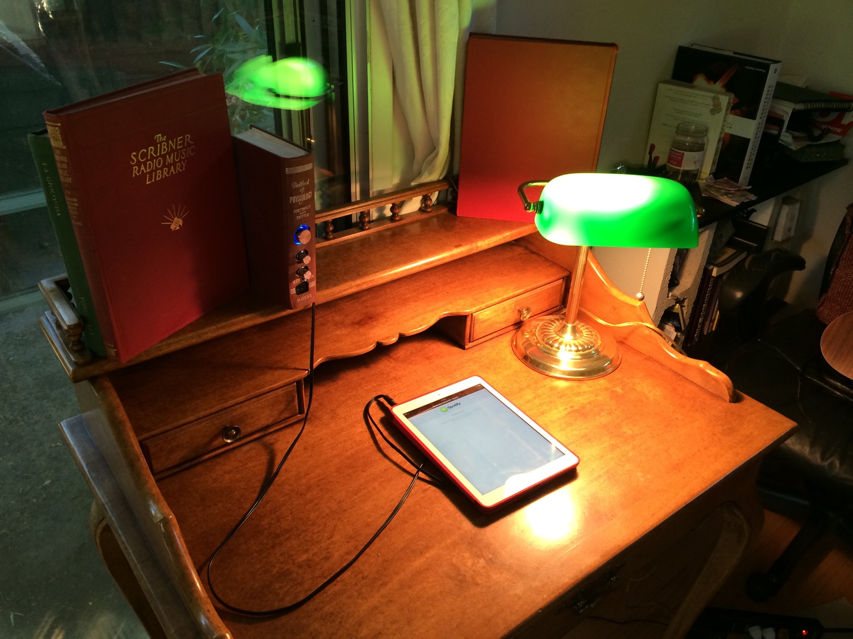 Old books equipped with exciters and an amplifier.
