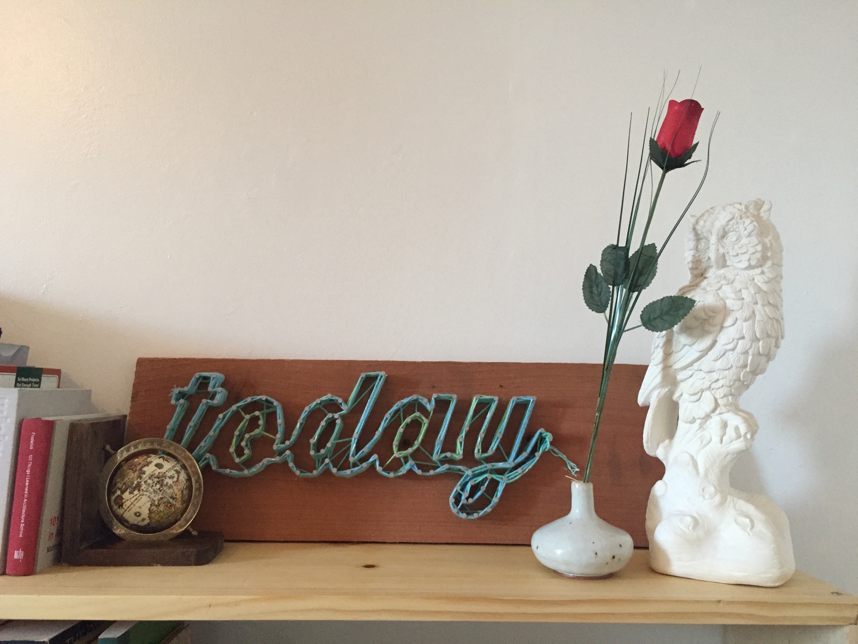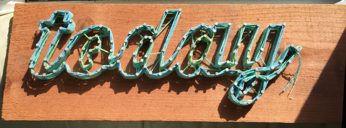 This piece was inspired by a photobooth at a bridal fair we attended. We had a sign up on the wall that said "TODAY" already, which we roughly translate to "Carpe Diem." We decided we should put this together as a cool thing that we liked to look at.