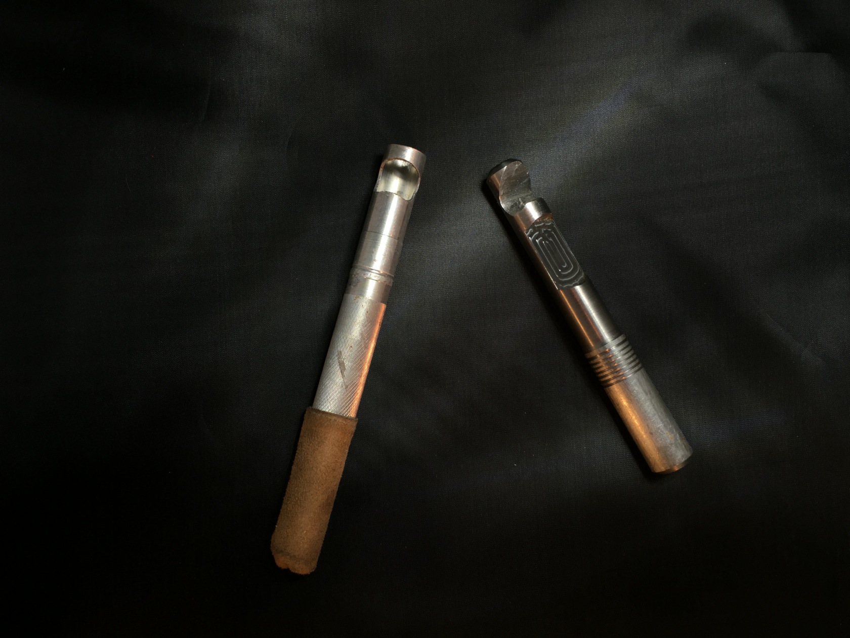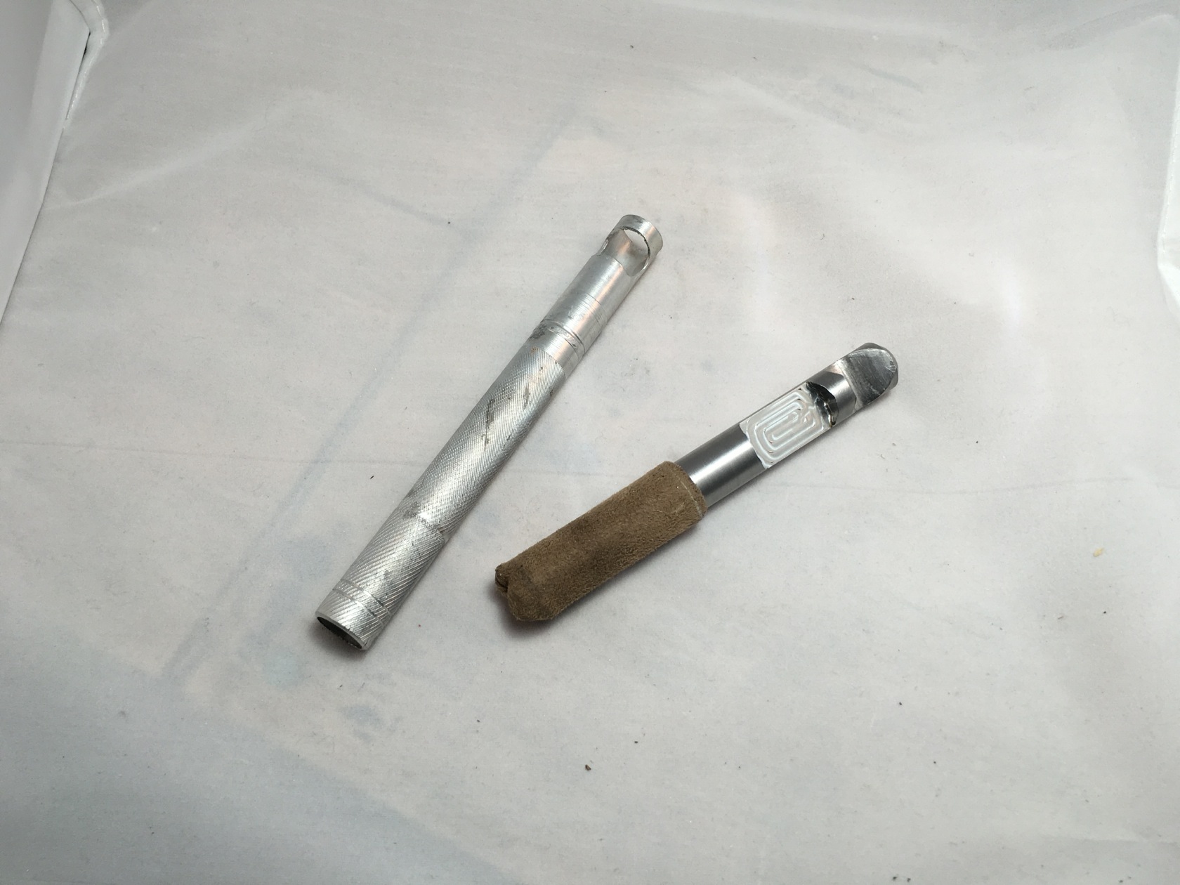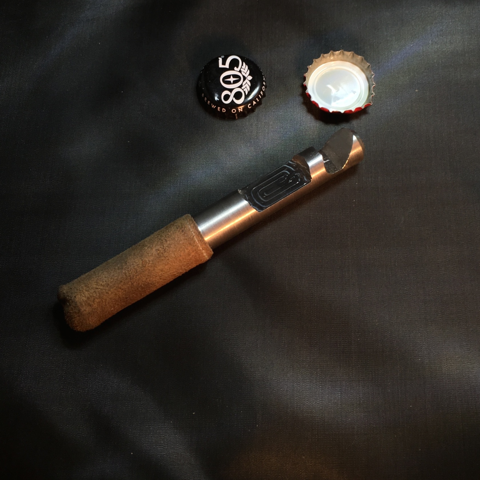 A set of bottle openers CNC machined from shaft stock. Each unit was finished on the lathe and has a custom touch to differentiate each. The Stainless version has a custom suede grip that can slide on and off of the handle. The Aluminum unit has chevron knurling up the base of it, and is very lightweight.