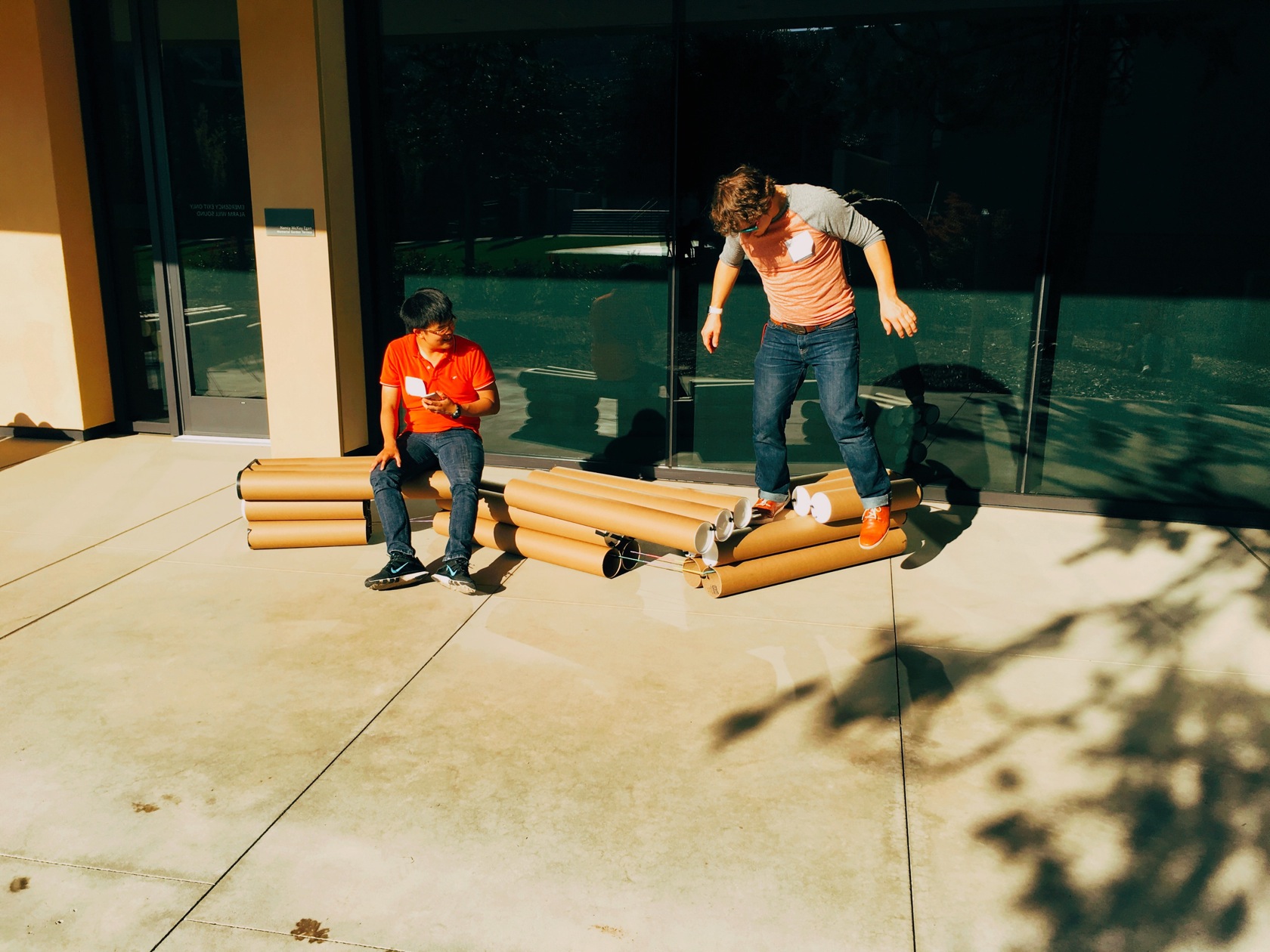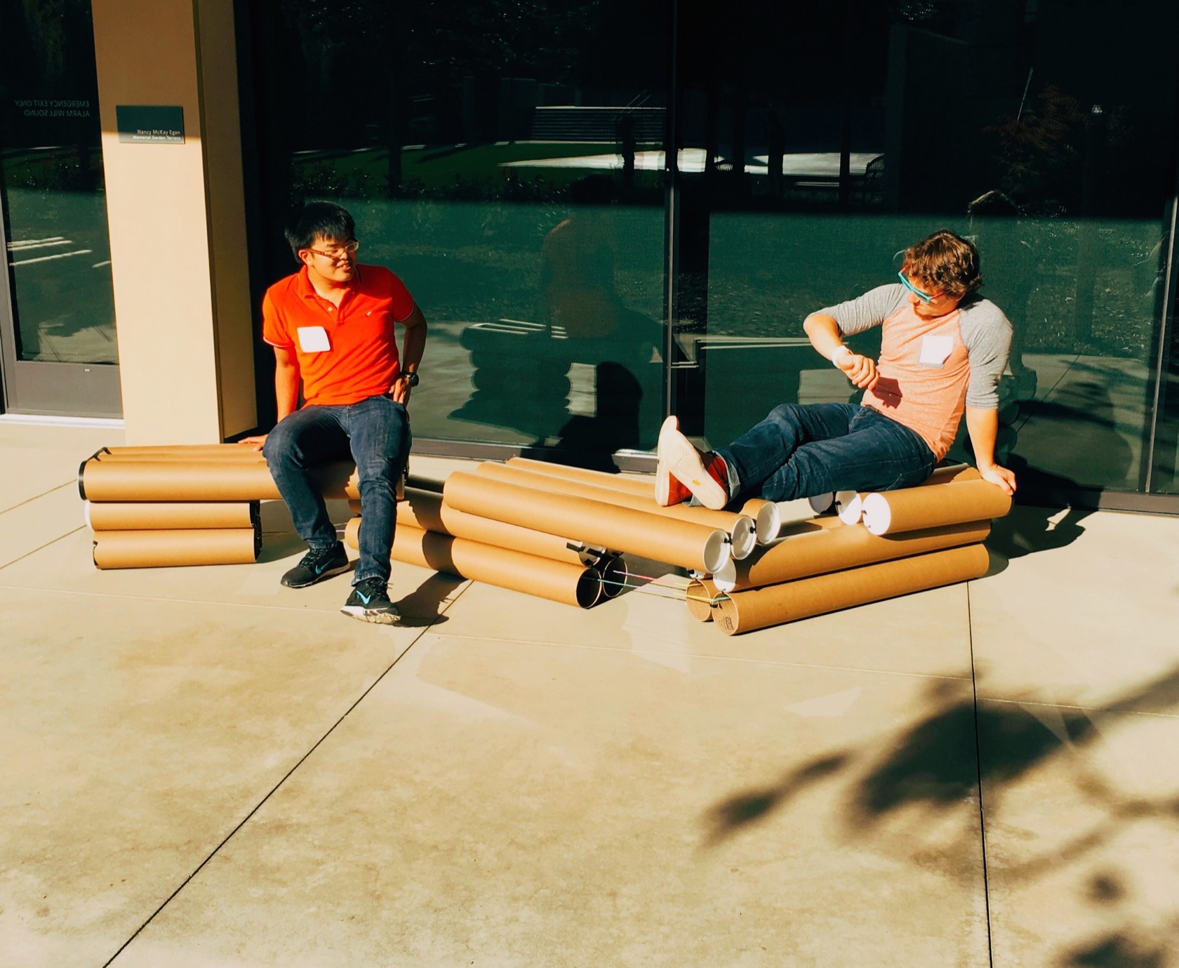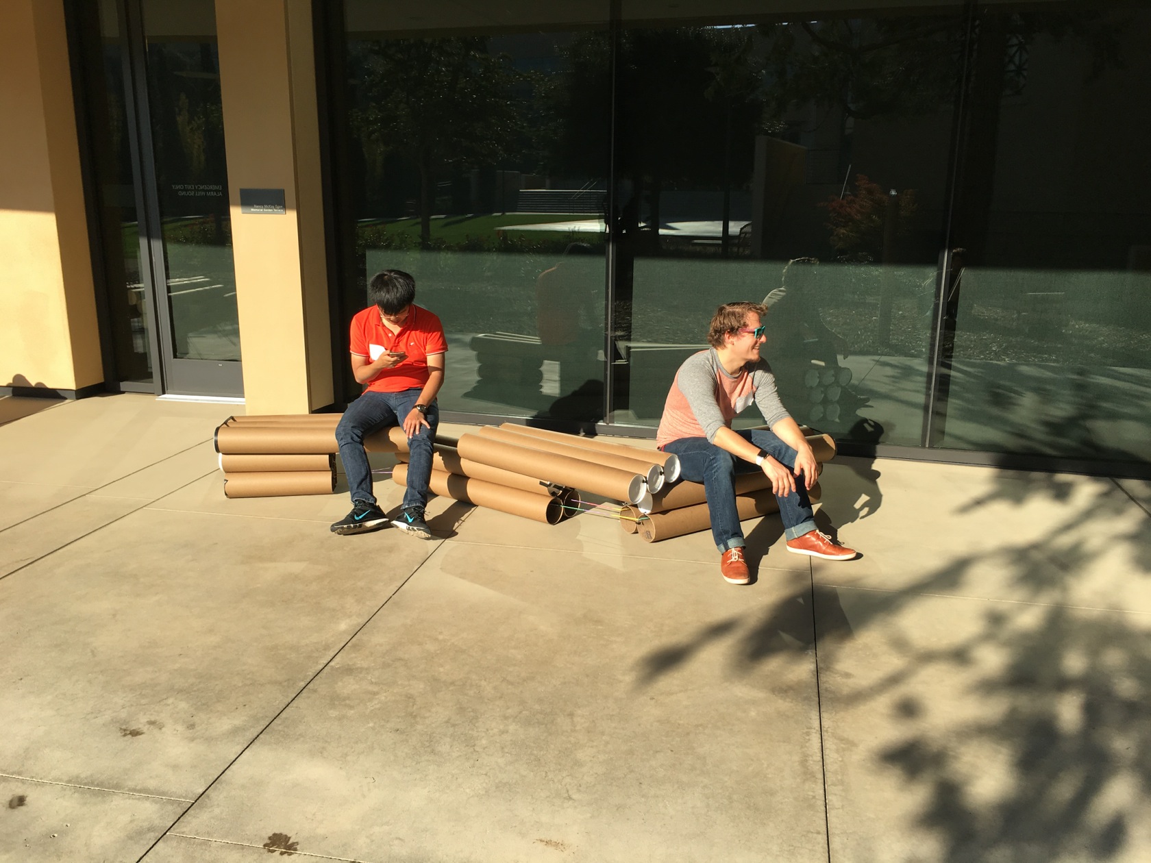 We were a team of five strangers that came together for the workshop. With limited time, we designed and completed our interactive bench in a way we found...good. We did this by simplifying the structure into levels and lengths. Each of the three components have a straightforward relationship with their neighbor, but all of them can be mixed up and arranged in new ways that are up to the user.