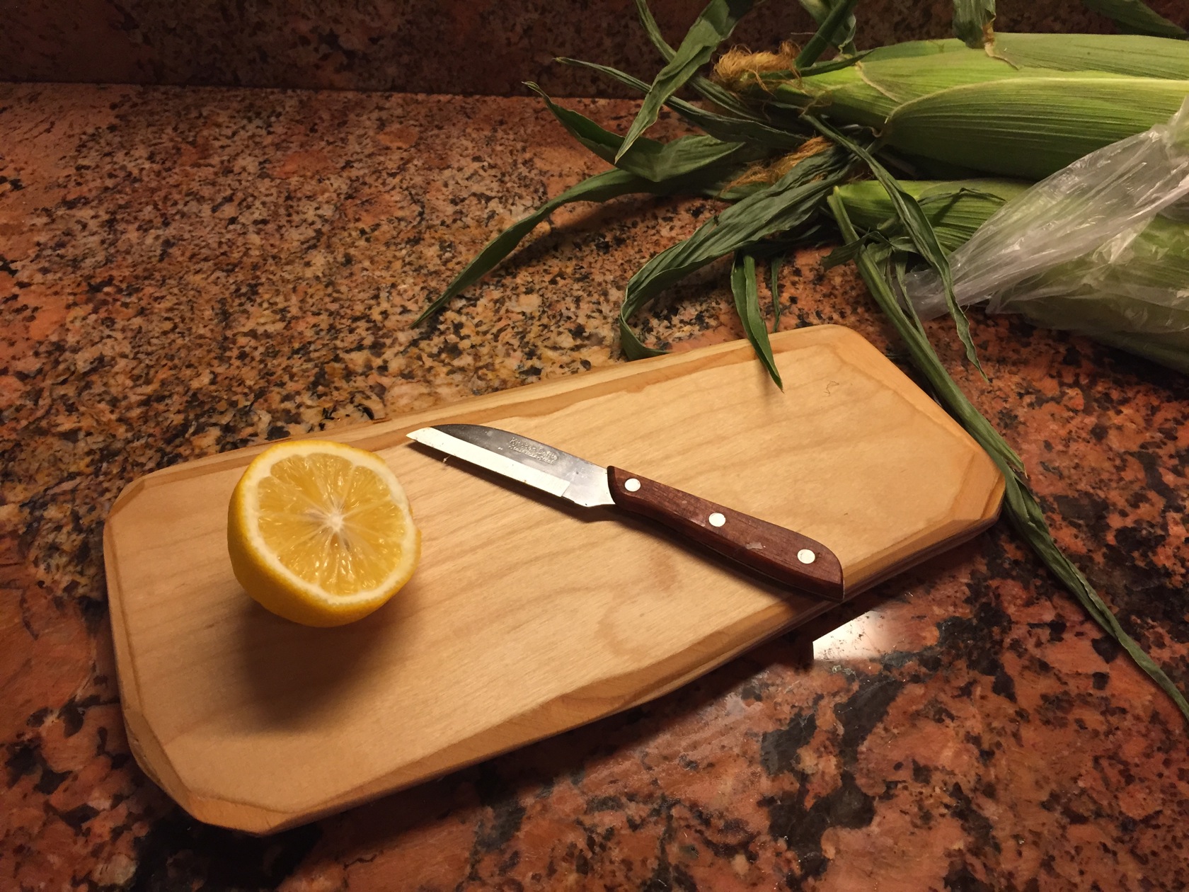 This board was created from a piece of plywood that was looking for a new life. The overall shape is geometric and angular, with a width that gradually decreases as the food on it gradually dissapears. The layers are revealed in one of the shallow angles on the top, telling the story of its stacked wooden parents. The board is large enough to present a small set of cheeses for entertaining, or to dize a few veggies.